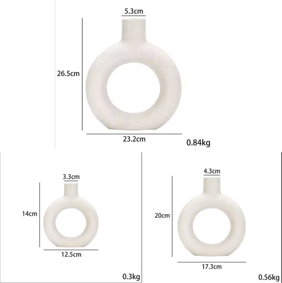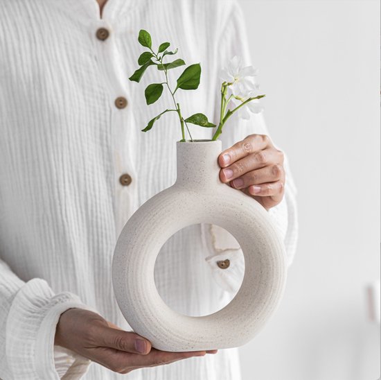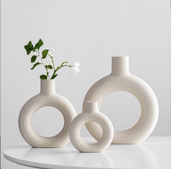 Keramische Vaas, witte donut, , set 3, vaas voor pampasgras