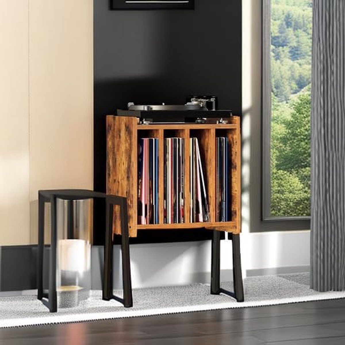 Deze platenkast combineert stijlvol design met handige opbergruimte en is perfect voor je platenspeler, platen en meer.