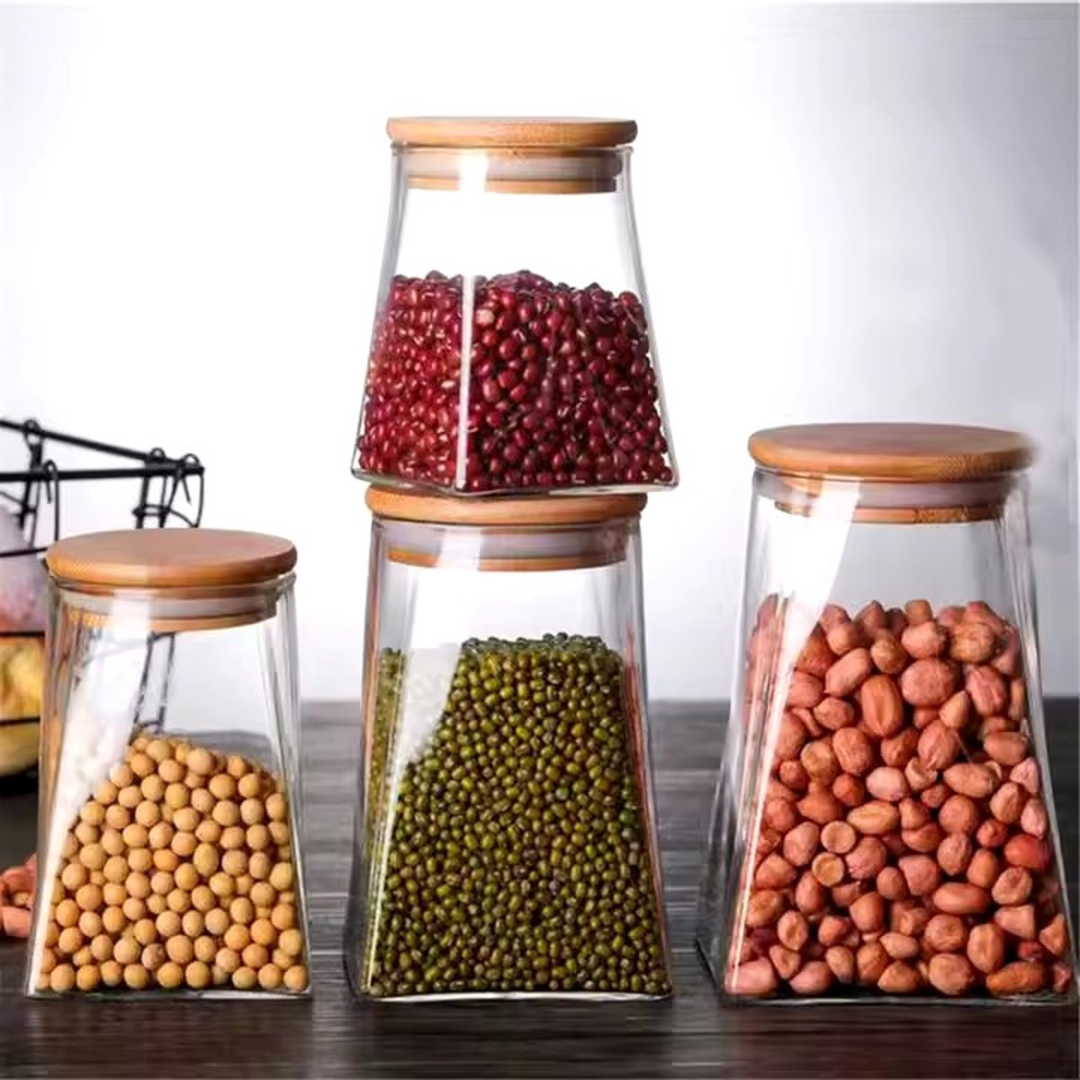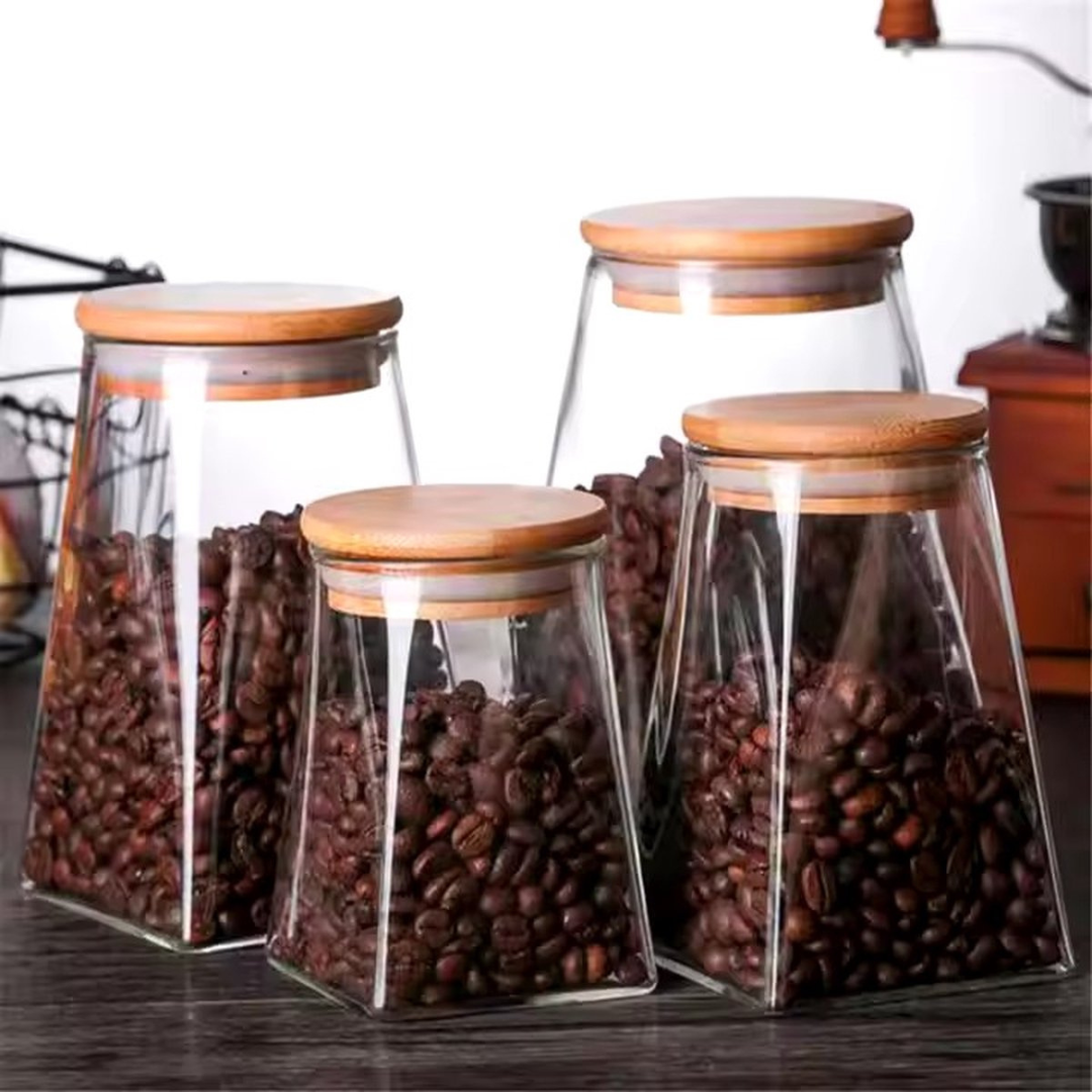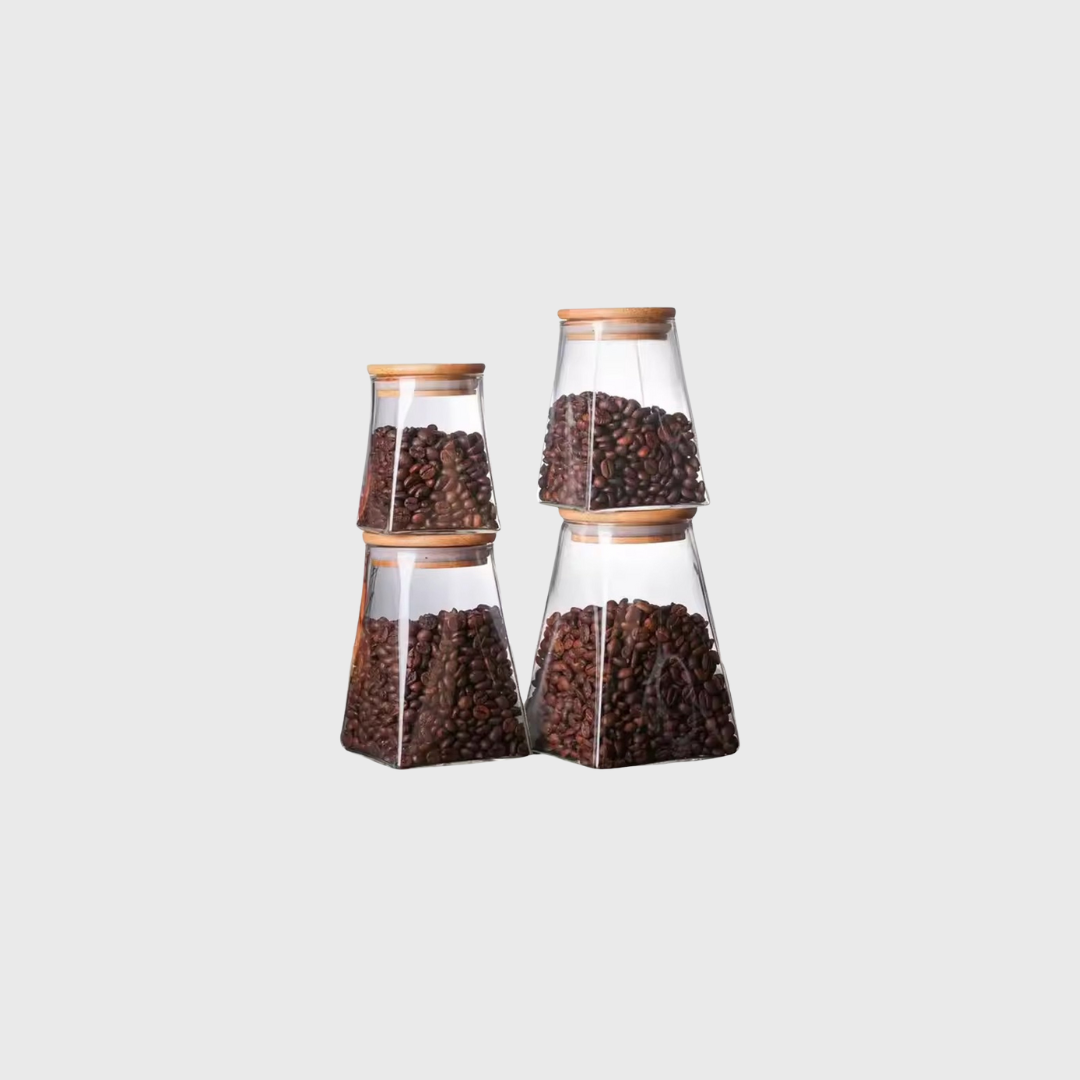 Glazen Voorraadpotten – Set van 4 met Bamboe Deksel