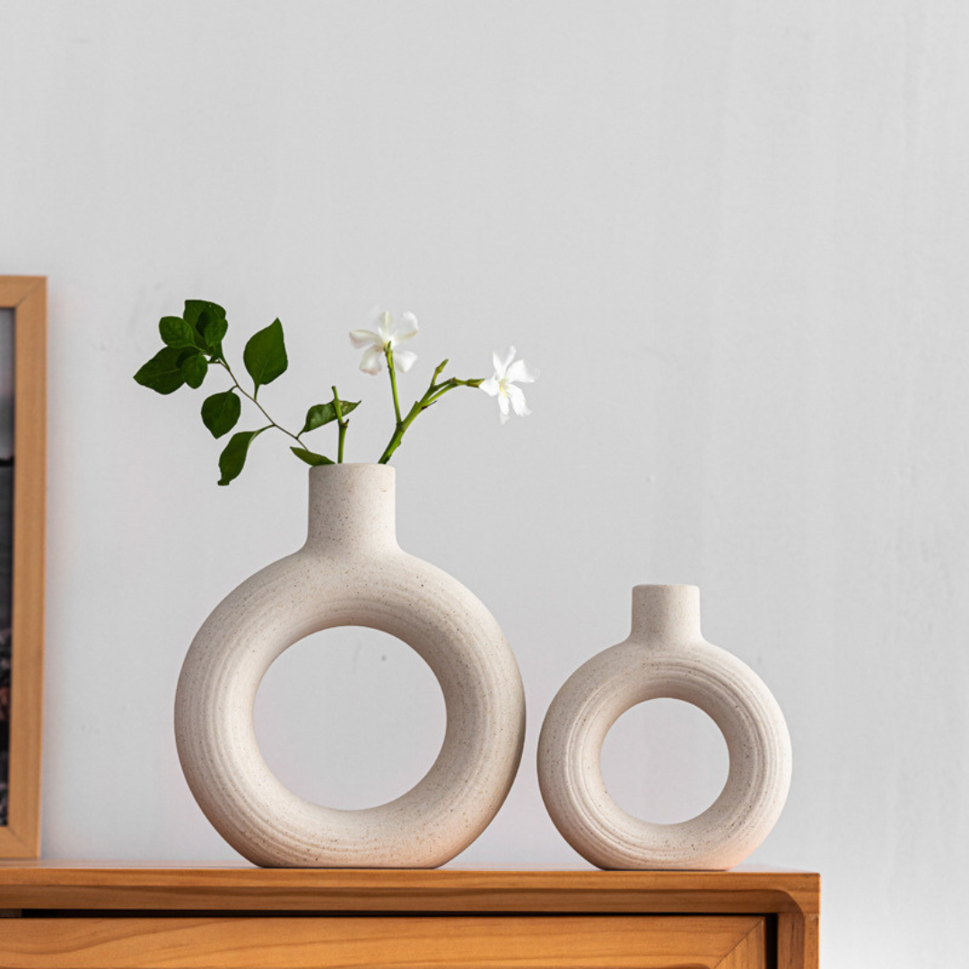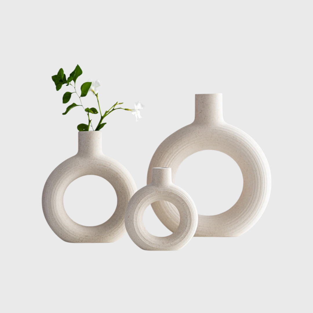 Geef je interieur een moderne touch met deze set van 3 Luxaliving keramische donut vazen. Perfect voor pampasgras, bloemen of als stijlvolle decoratie in de woonkamer, hal, op tafel of vensterbank. Scandinavisch design dat ook ideaal is voor bruiloften en feestelijke gelegenheden.